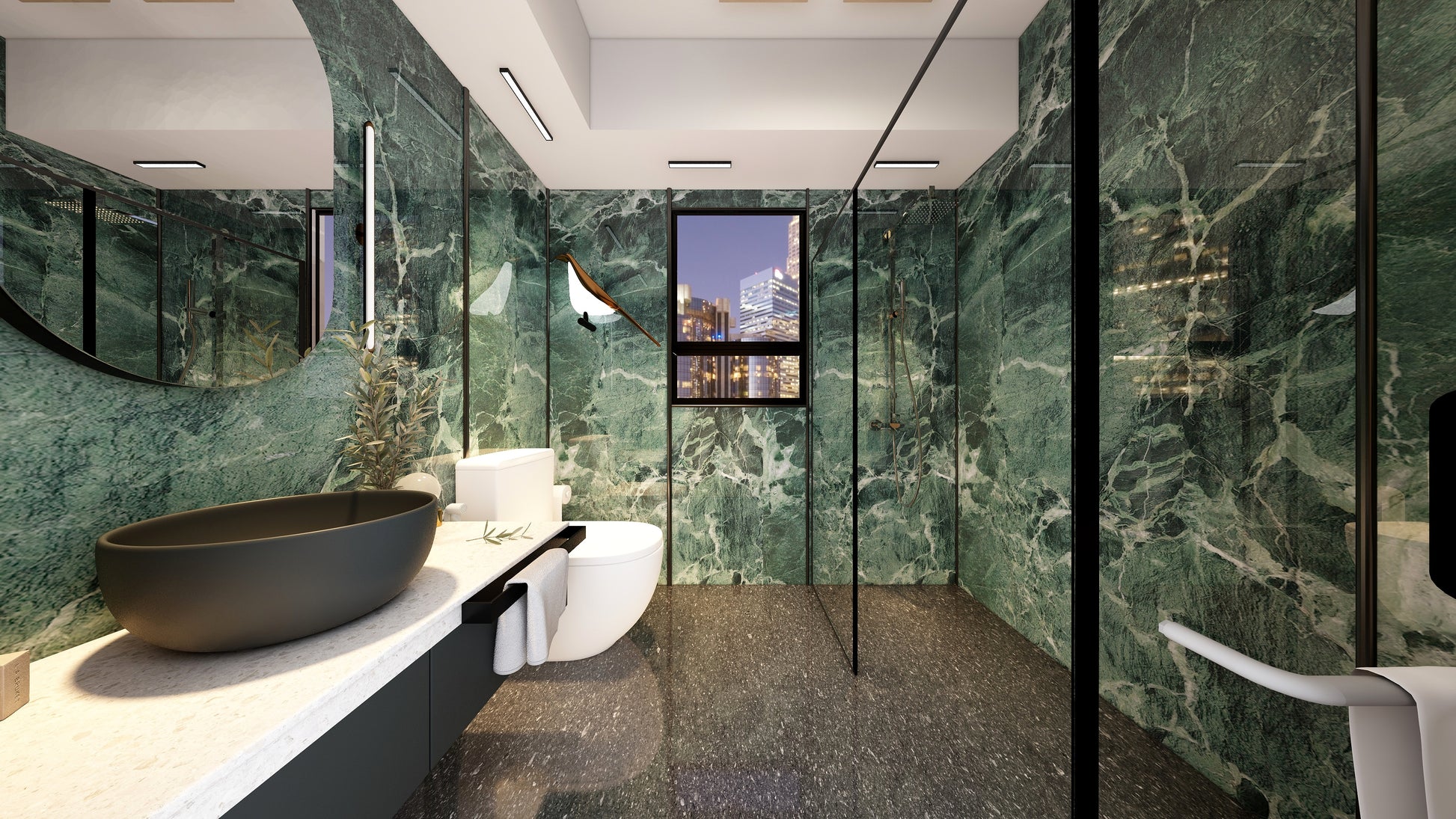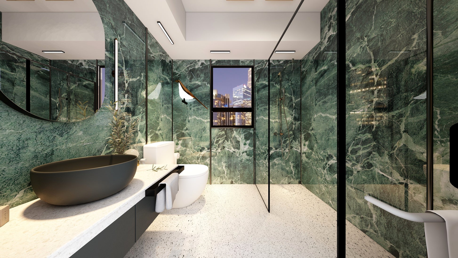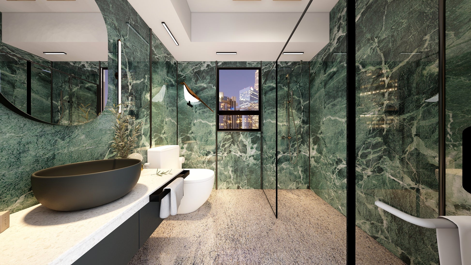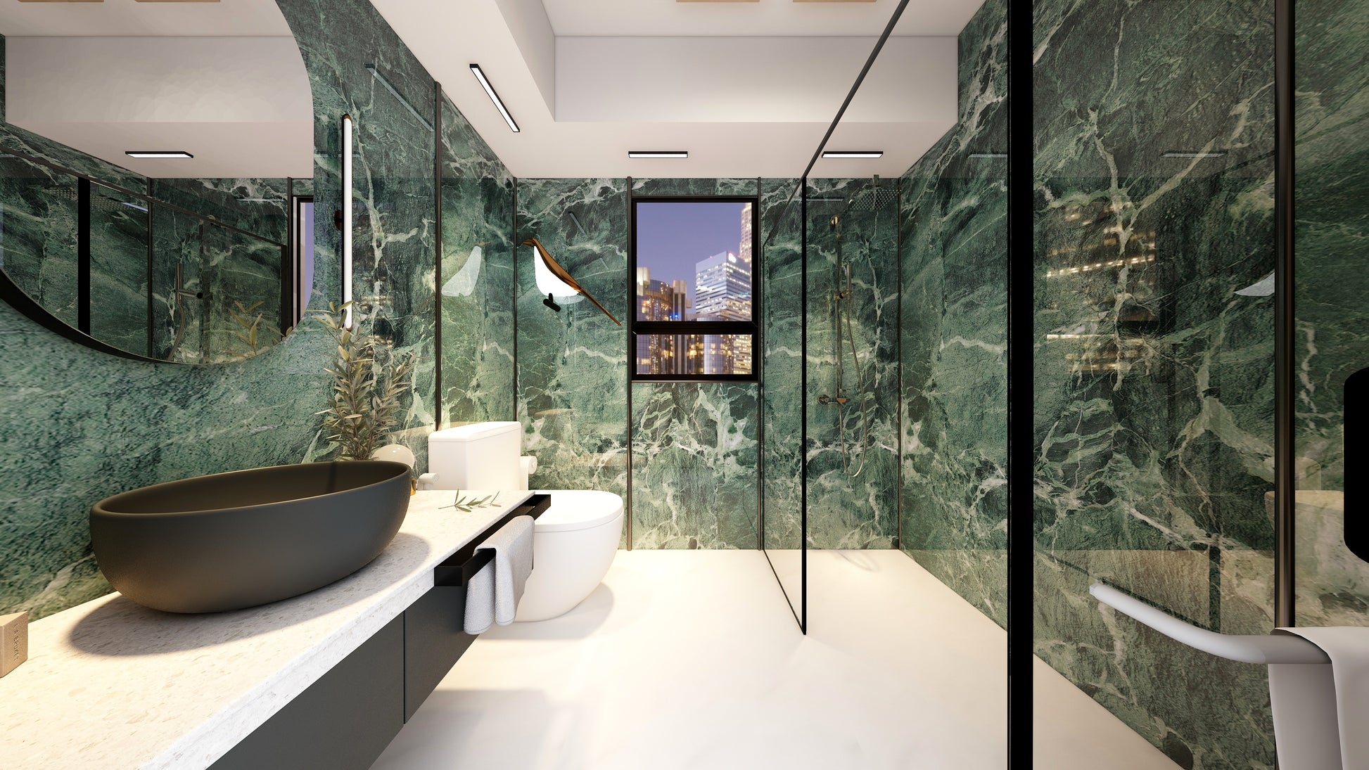 The Wall are a composite slabs manufactured under extreme environments, under high pressures of up to 700,000kgf/mยฒ and temperatures of 220ยฐC. Thus achieving the perfect equilibrium of tensile strength, density and durability to withstand wet area usage like bathroom walls.