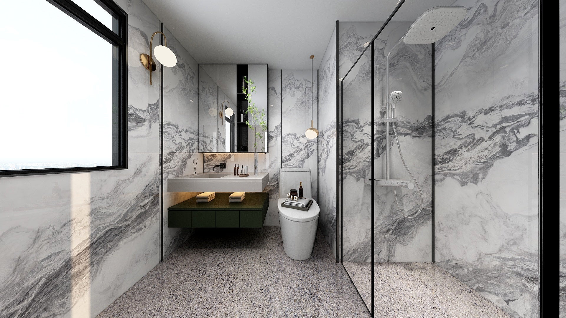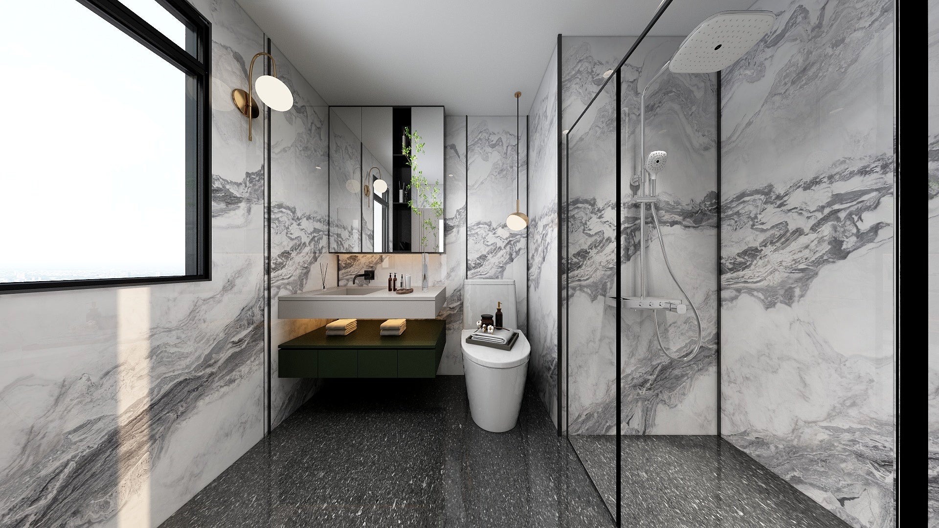 The Wall are a composite slabs manufactured under extreme environments, under high pressures of up to 700,000kgf/m² and temperatures of 220°C. Thus achieving the perfect equilibrium of tensile strength, density and durability to withstand wet area usage like bathroom walls.