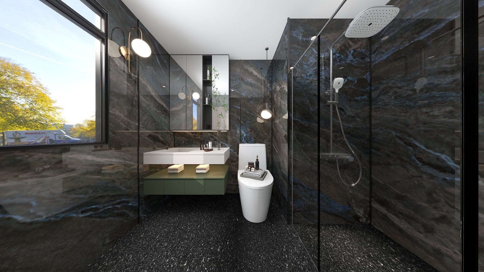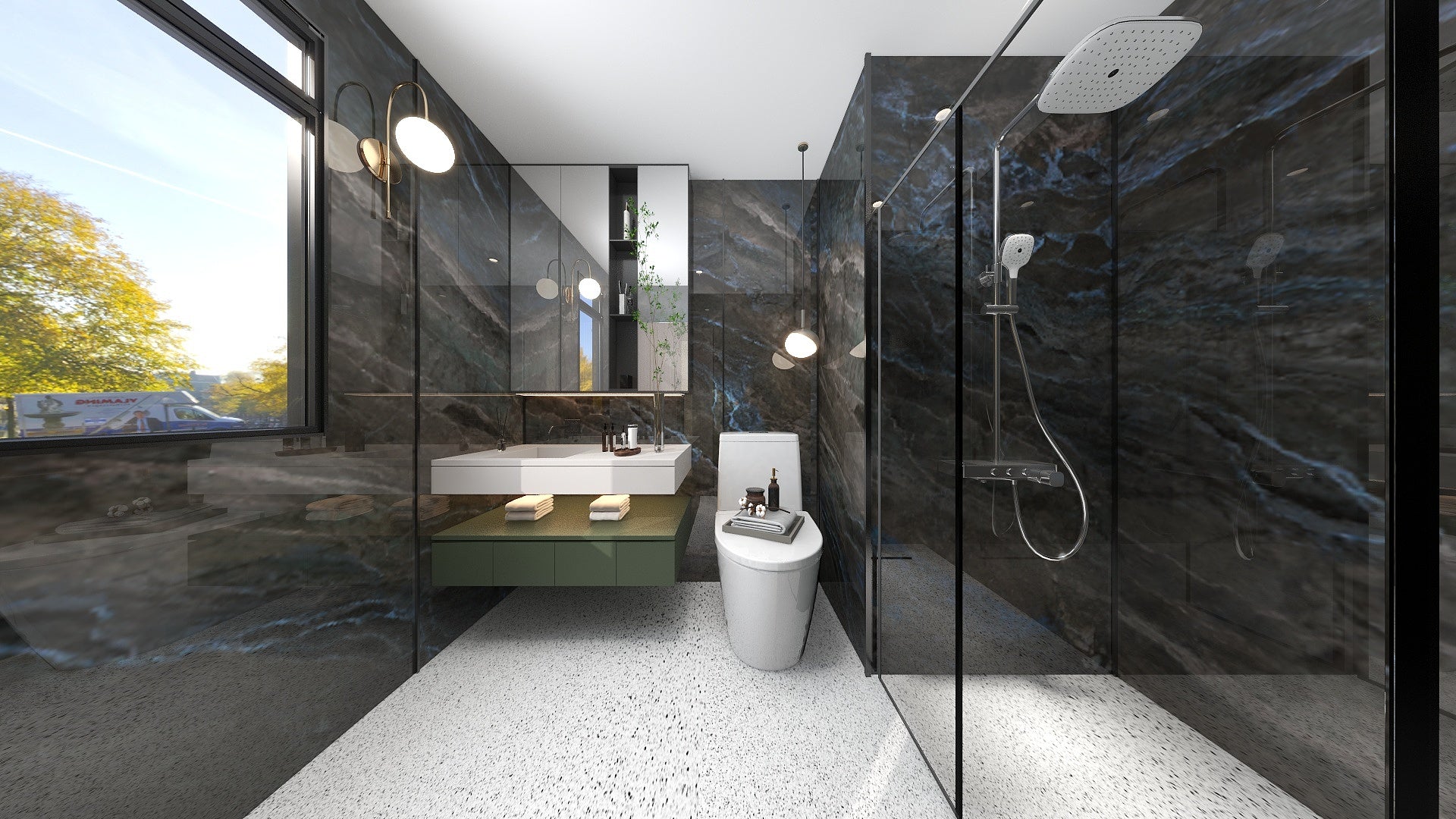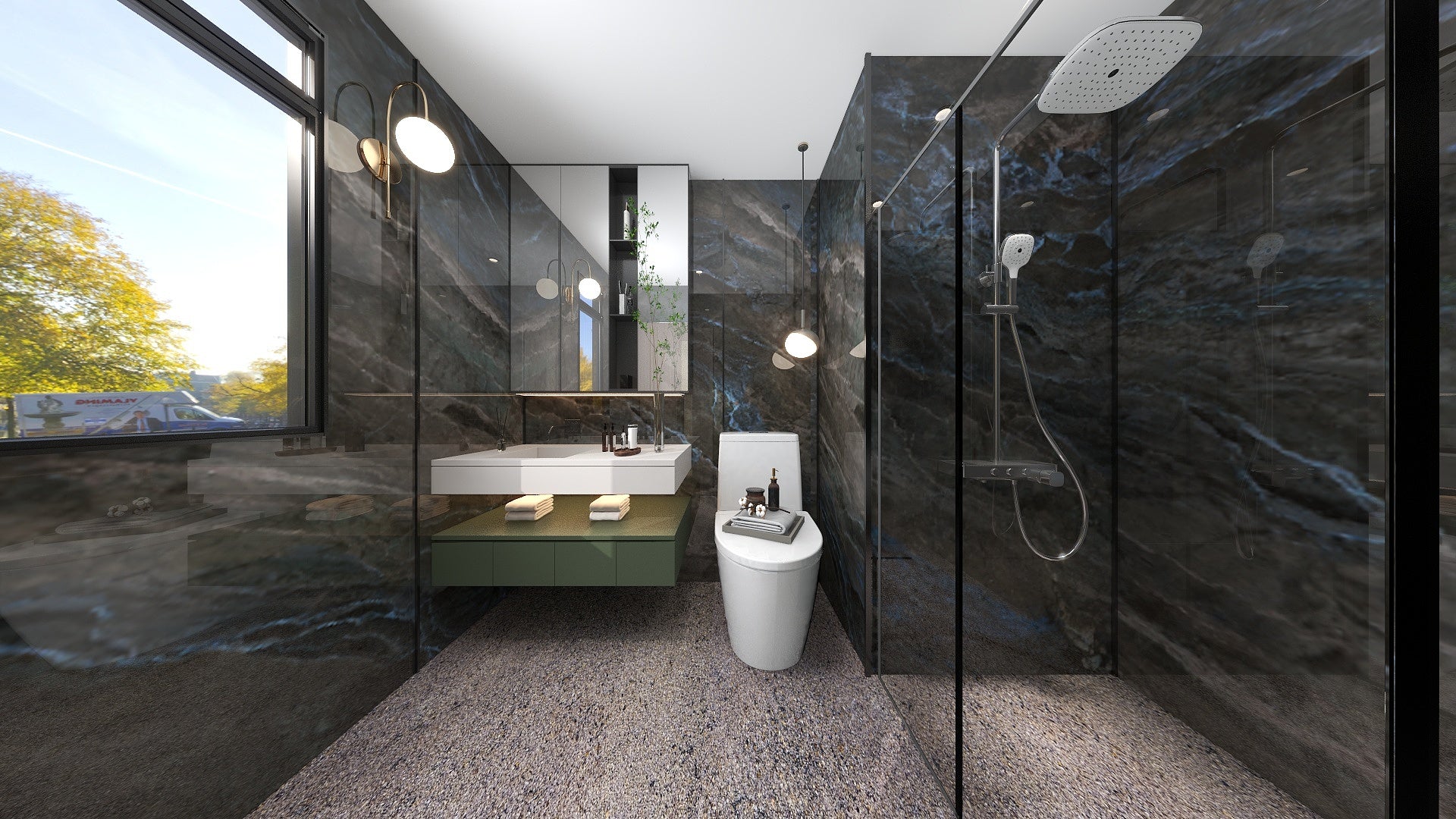 Say goodbye to black mouldy groutings in your bathroom walls. Every The Wall composite slabs covers the full height from floor to ceiling, 100% waterproof, high stain resistance, washing bleach-proof.