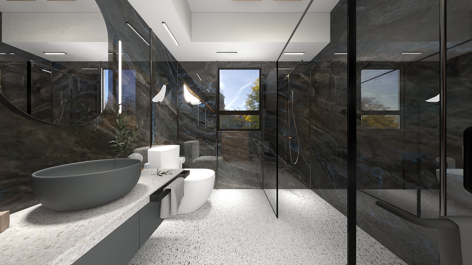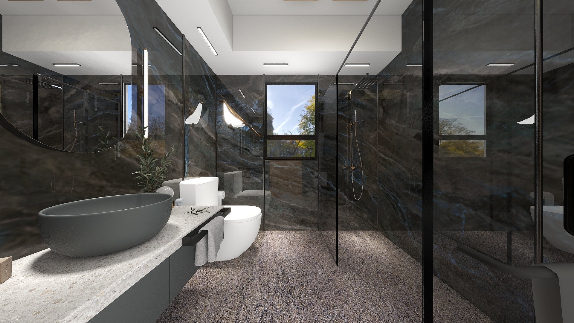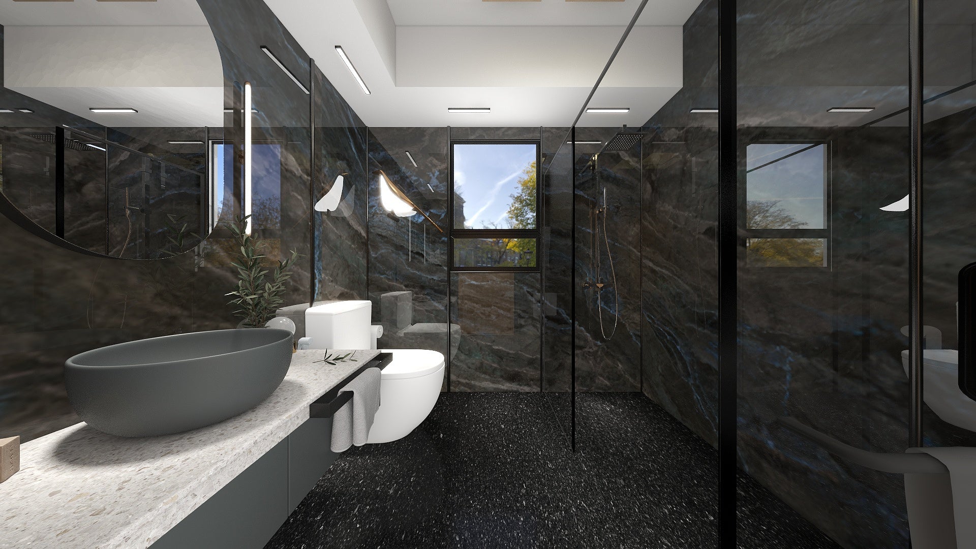 The Wall are a composite slabs manufactured under extreme environments, under high pressures of up to 700,000kgf/m² and temperatures of 220°C. Thus achieving the perfect equilibrium of tensile strength, density and durability to withstand wet area usage like bathroom walls.