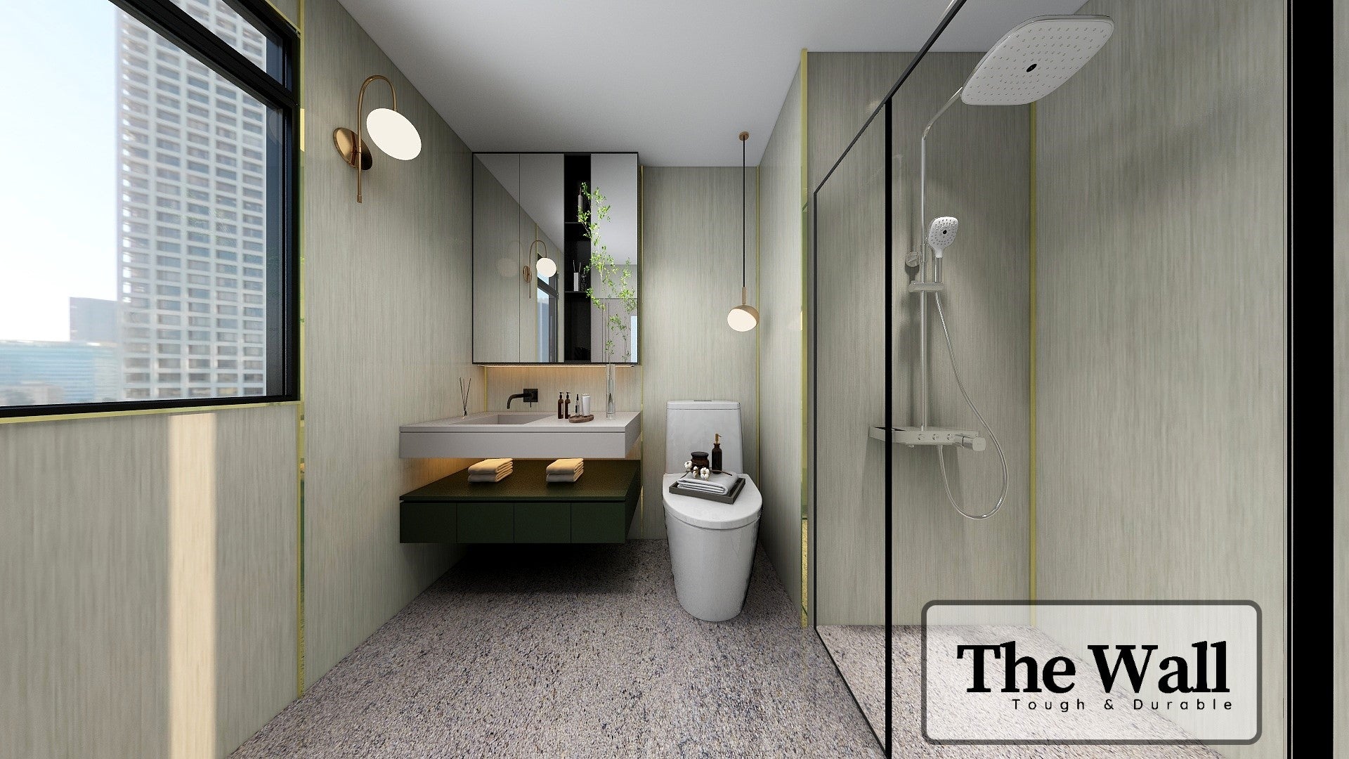 Say goodbye to black mouldy groutings in your bathroom walls. Every The Wall composite slabs covers the full height from floor to ceiling, 100% waterproof, high stain resistance, washing bleach-proof.ย