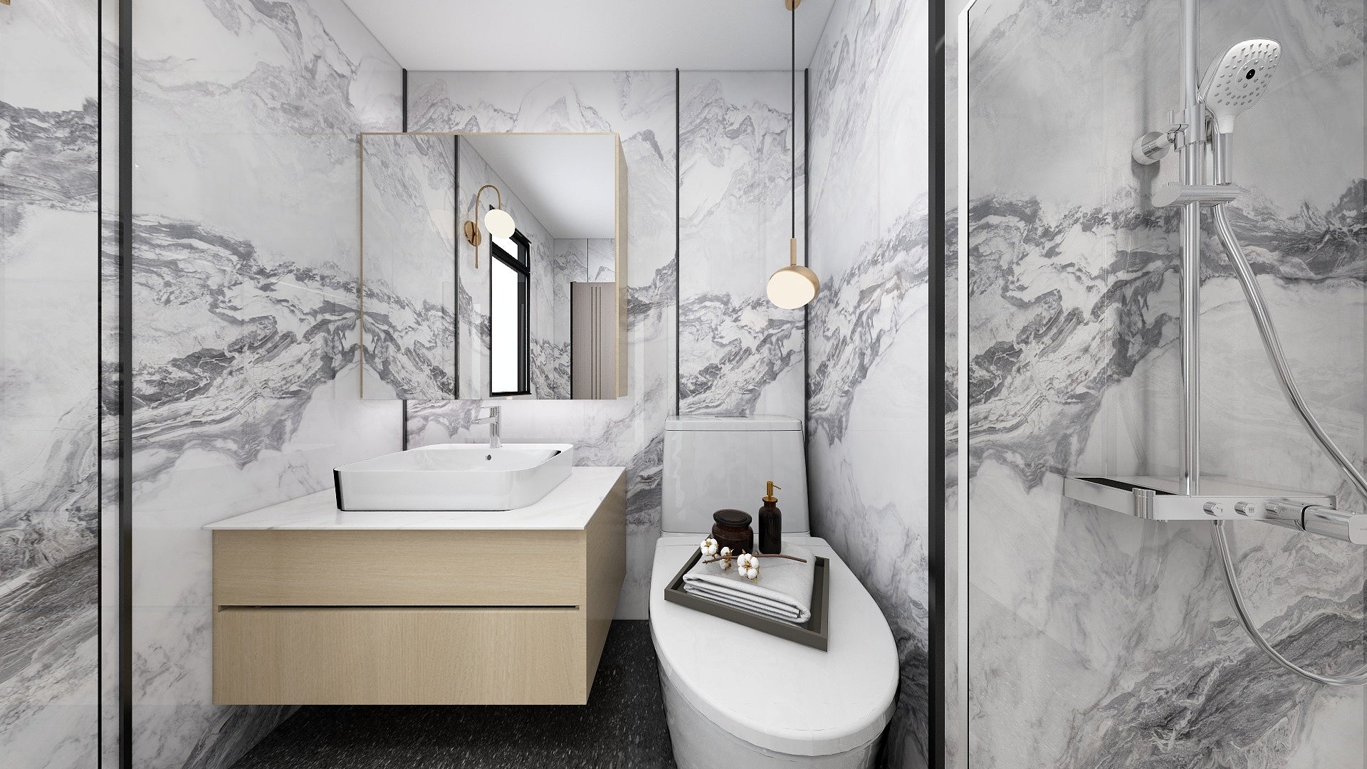 Every set is custom built-to-order using The Wall high-performance furniture boards, CNC-crafted & ABS sealed in-house for precision and accuracy. Moisture-proof, termite-proof and scratch resistant—perfect for Singapore’s lifestyle and climate. Designed in-house with refined textures, our Waterproof Vanity Sets offer functional beauty with a luxury edge.