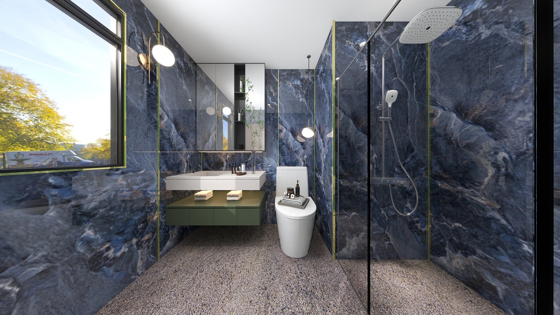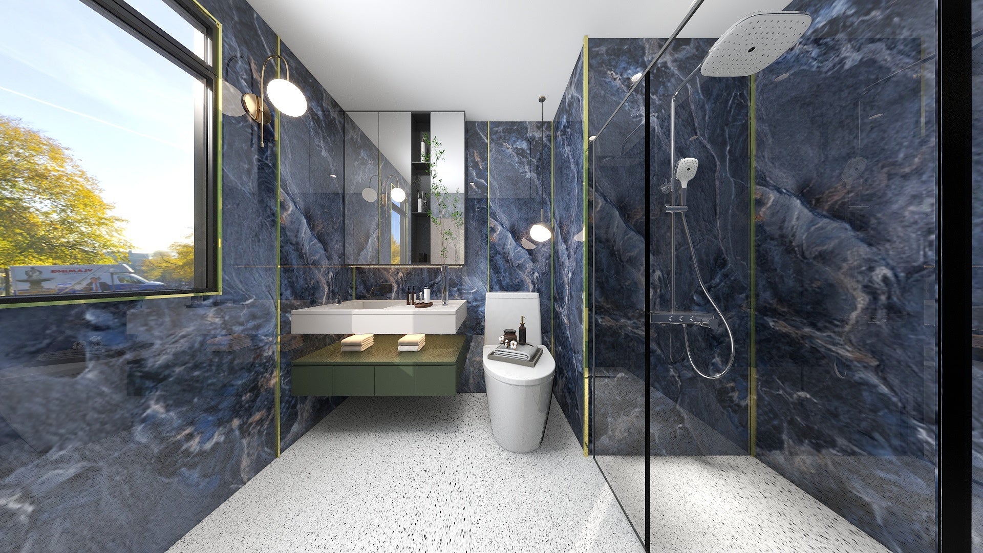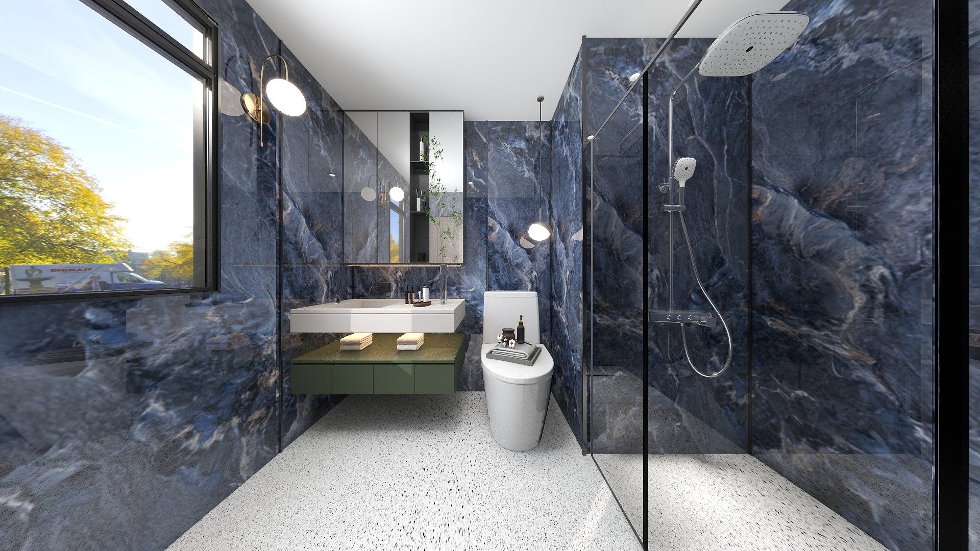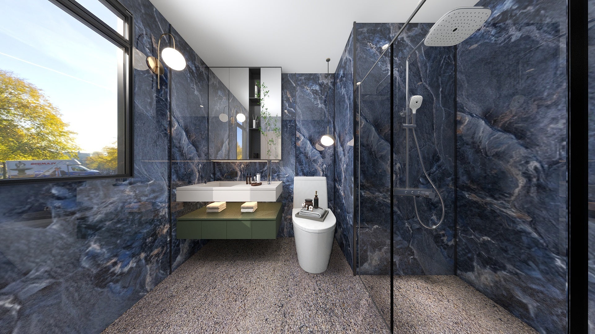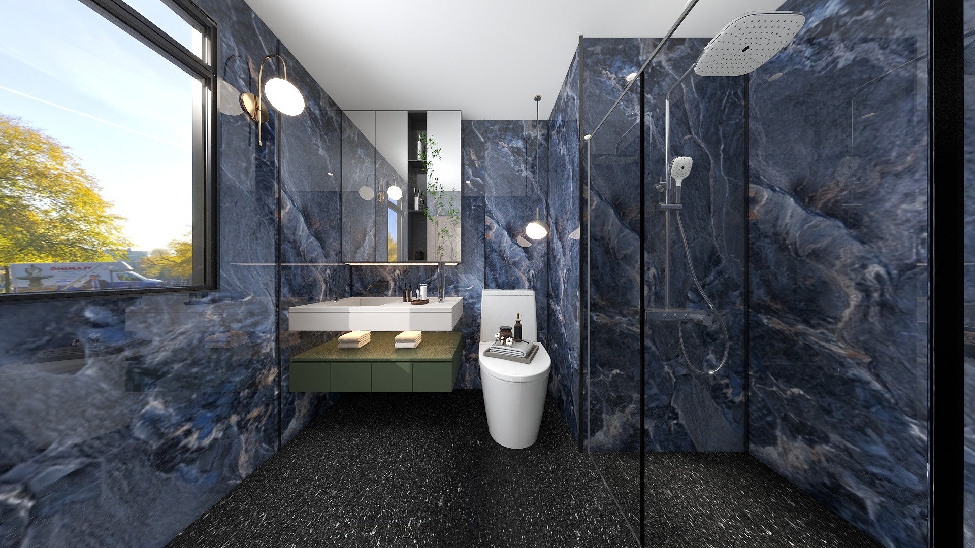 The Wall are a composite slabs manufactured under extreme environments, under high pressures of up to 700,000kgf/mยฒ and temperatures of 220ยฐC. Thus achieving the perfect equilibrium of tensile strength, density and durability to withstand wet area usage like bathroom walls.