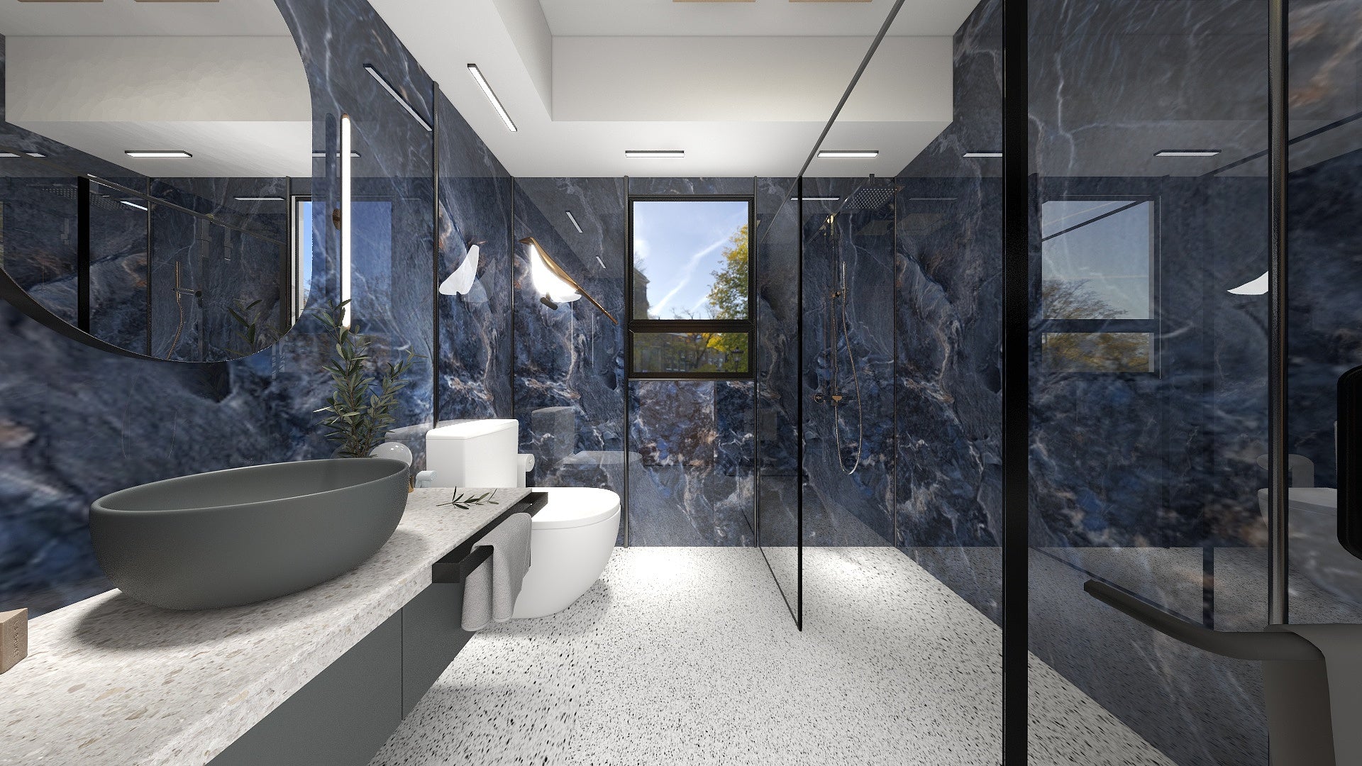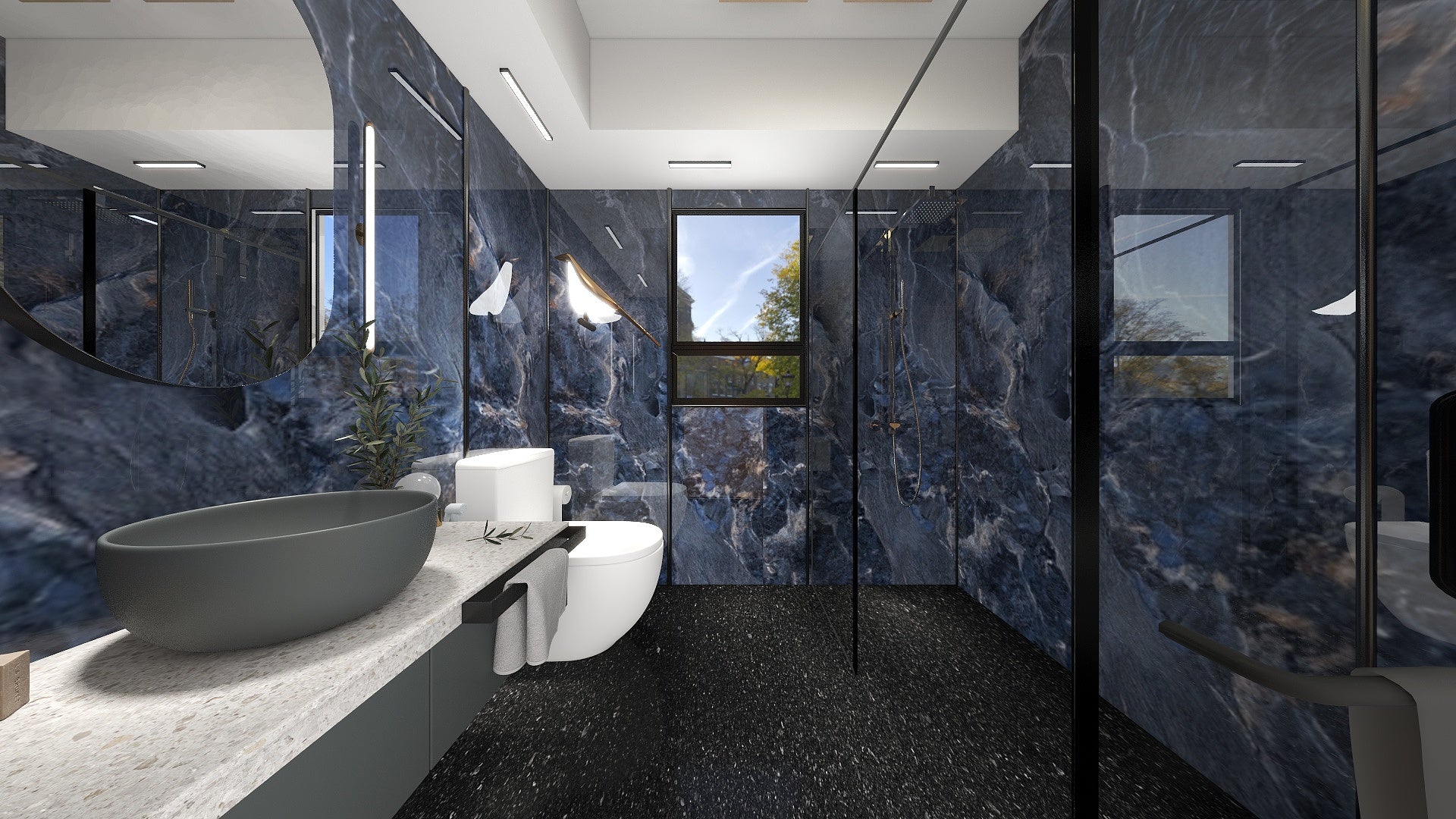 The Wall are a composite slabs manufactured under extreme environments, under high pressures of up to 700,000kgf/m² and temperatures of 220°C. Thus achieving the perfect equilibrium of tensile strength, density and durability to withstand wet area usage like bathroom walls.