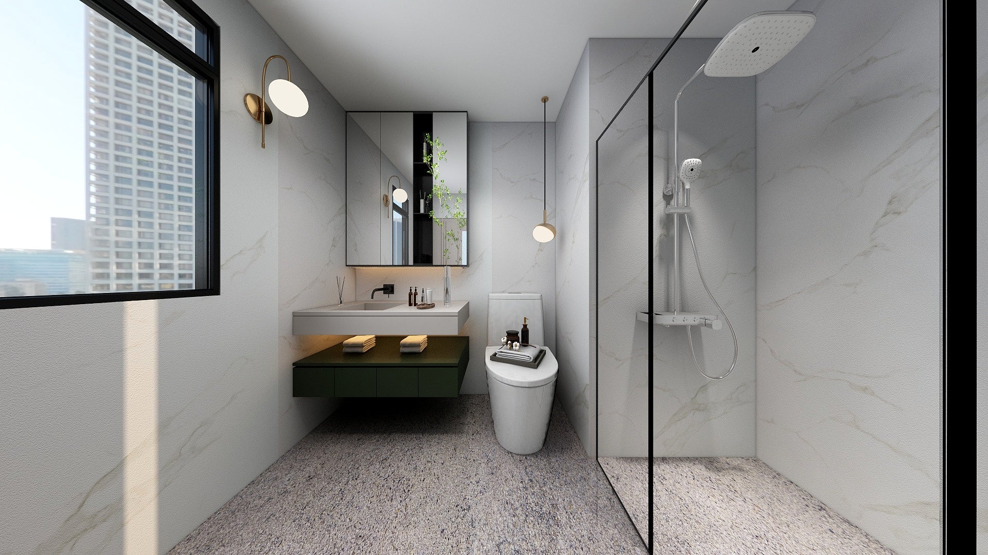 Say goodbye to black mouldy groutings in your bathroom walls. Every The Wall composite slabs covers the full height from floor to ceiling, 100% waterproof, high stain resistance, washing bleach-proof.